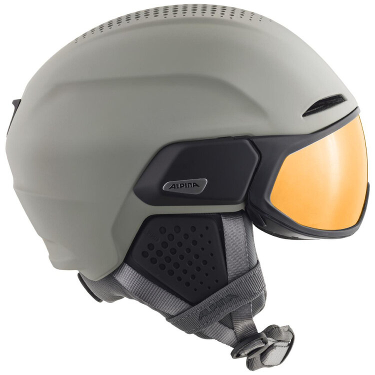 Deze grijze Alpina Alto Q-Lite is een stevige, zeer comfortabele skihelm met veilige Hardshell / ABS constructie. Uniek aan deze Alto-modellen is het TRM mechanisme dat het vizier naadloos laat aansluiten op de helm. Hierdoor is er geen hinderlijke luchtstroom die je bij veel andere vizier-skihelmen wel hebt. Het vizier is breed en geeft daardoor maximaal zicht en het comfort is erg fijn door de pasvorm maar ook door de met Lavalan wol afgewerkte nekwarmer en binnenstoffering. De hygiëne is goed voor elkaar dankzij het feit dat deze uitneembaar is. De ventilatie is de helm zorgt voor minder vocht in de helm waardoor het dubbelwandige vizier nagenoeg niet kan beslaan. Ook bij warm weer is het zweten aanzienlijk minder wat het comfort nog beter maakt.