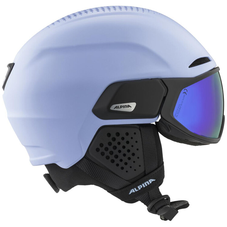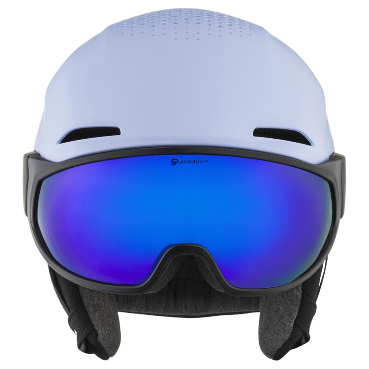 Deze paarse Alpina Alto Q-Lite is een stevige, zeer comfortabele skihelm met veilige Hardshell / ABS constructie. Uniek aan deze Alto-modellen is het TRM mechanisme dat het vizier naadloos laat aansluiten op de helm. Hierdoor is er geen hinderlijke luchtstroom die je bij veel andere vizier-skihelmen wel hebt. Het vizier is breed en geeft daardoor maximaal zicht en het comfort is erg fijn door de pasvorm maar ook door de met Lavalan wol afgewerkte nekwarmer en binnenstoffering. De hygiëne is goed voor elkaar dankzij het feit dat deze uitneembaar is. De ventilatie is de helm zorgt voor minder vocht in de helm waardoor het dubbelwandige vizier nagenoeg niet kan beslaan. Ook bij warm weer is het zweten aanzienlijk minder wat het comfort nog beter maakt.