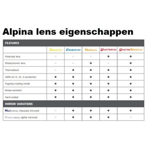 Deze high-tech ogende Alpina Big Horn Q skibril matcht een enorm hoog comfort met de coole uitstraling van een spiegellens. Het brede zicht van dit grotere formaat bril wordt veroorzaakt door het grote, bijna onzichtbare sferische frame. Alle lenzen van Alpina zijn UV blokkerend en bieden dus optimale bescherming tegen de zon. Daarnaast beschikt dit model over een goed ventilerend frame waardoor de bril nauwelijks kan beslaan. Deze Alpina Big Horn is voorzien van 'Comfort Frame' technologie waardoor het frame zich aanpast aan de vorm van het gezicht. Een ergonomische pasvorm die voor optimaal comfort zorgt en drukplekken voorkomt.