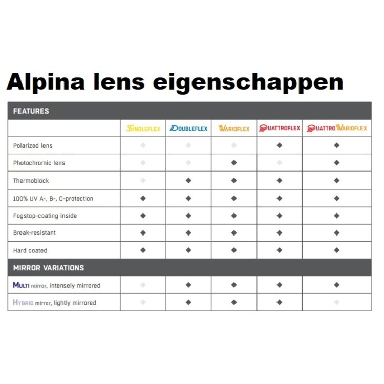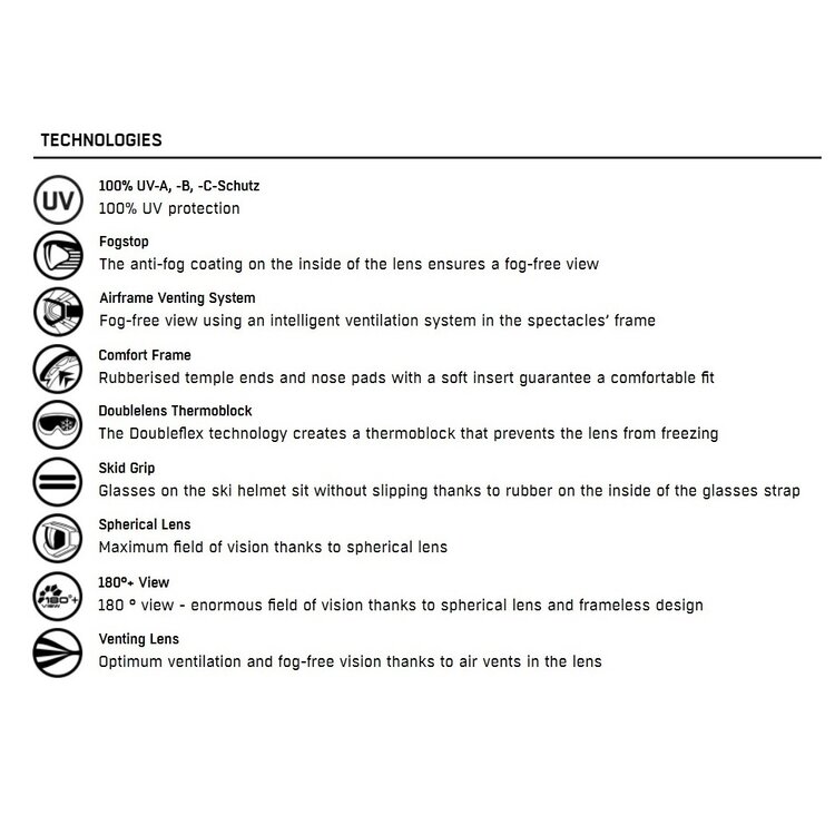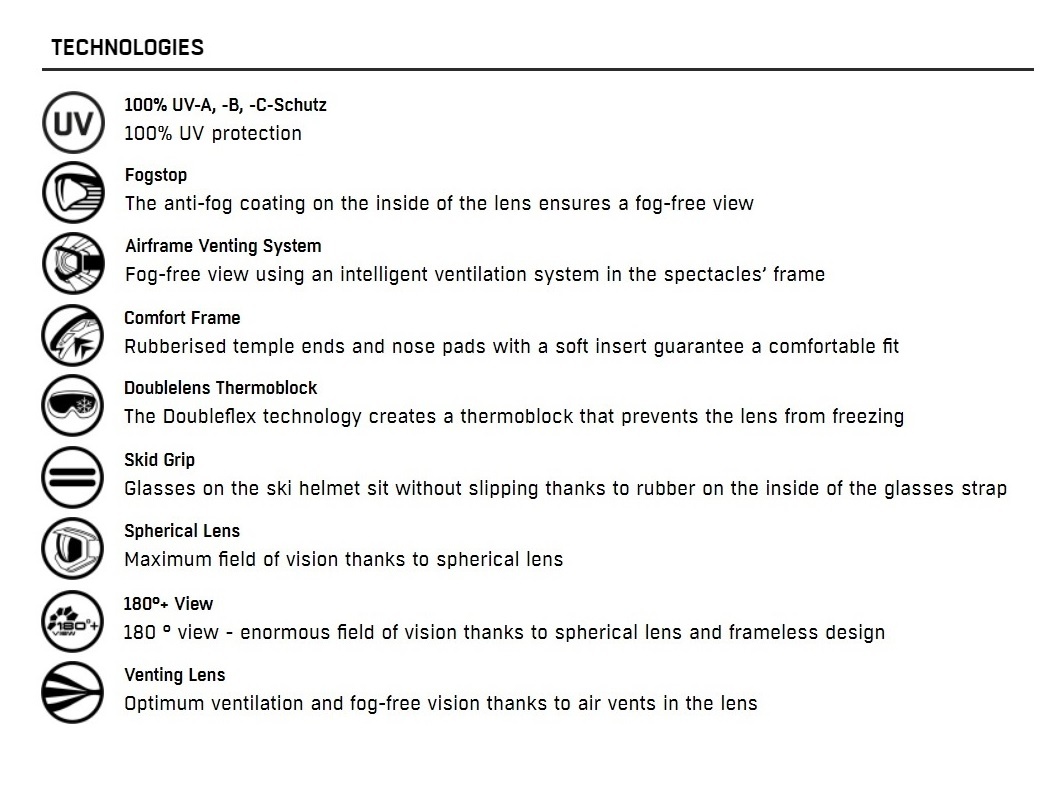 Quattroflex is de term voor een speciaal gekleurde lens die het hoeveelheid blauw in zichtbaar licht vermindert. Dit vergroot de contrast, waardoor de omgeving beter en sneller wordt waargenomen. Daarnaast is de lens voorzien van een dubbel-laags lenstechniek die ervoor zorgt dat de lens niet bevriest en nauwelijks kan beslaan. De spiegelcoating op deze lens ziet er cool uit en belangrijker nog, hij blokt alle schadelijke UV en Infrarode straling. Verder biedt deze lens optimaal zicht bij bewolkte tot zonnige weersomstandigheden (categorie 2 en 3). Geschikt voor alle soorten wintersport, ideaal voor wisselvallig wintersportweer.