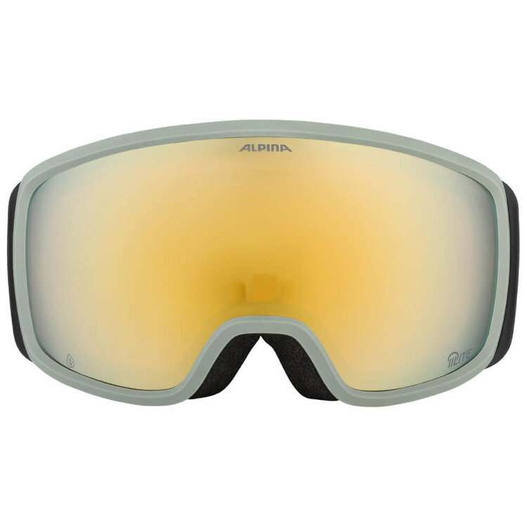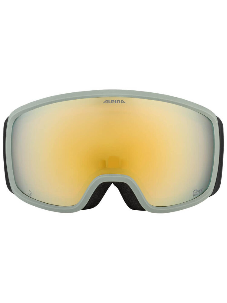 De lens van de skibril is erg bepalend voor de prijsstelling. Deze Alpina Bivio versie met groene frame en gele, spiegelende Mirror lens is technisch geavanceerd. Het combineert namelijk een warme rode tint met contrast verhogende eigenschappen. Er is door de spiegelcoating maximale filtering van hinderlijke schitteringen wat een goed, contrastrijk, helder zicht oplevert. Deze bril beschermt bij elk weertype maar geeft ideaal zicht bij wat donkerder, bewolkt weer en sneeuw (categorie 2). Geschikt voor alle soorten wintersport en dankzij de spiegelcoating wordt Infrarood gereflecteerd wat rustiger is voor de ogen.