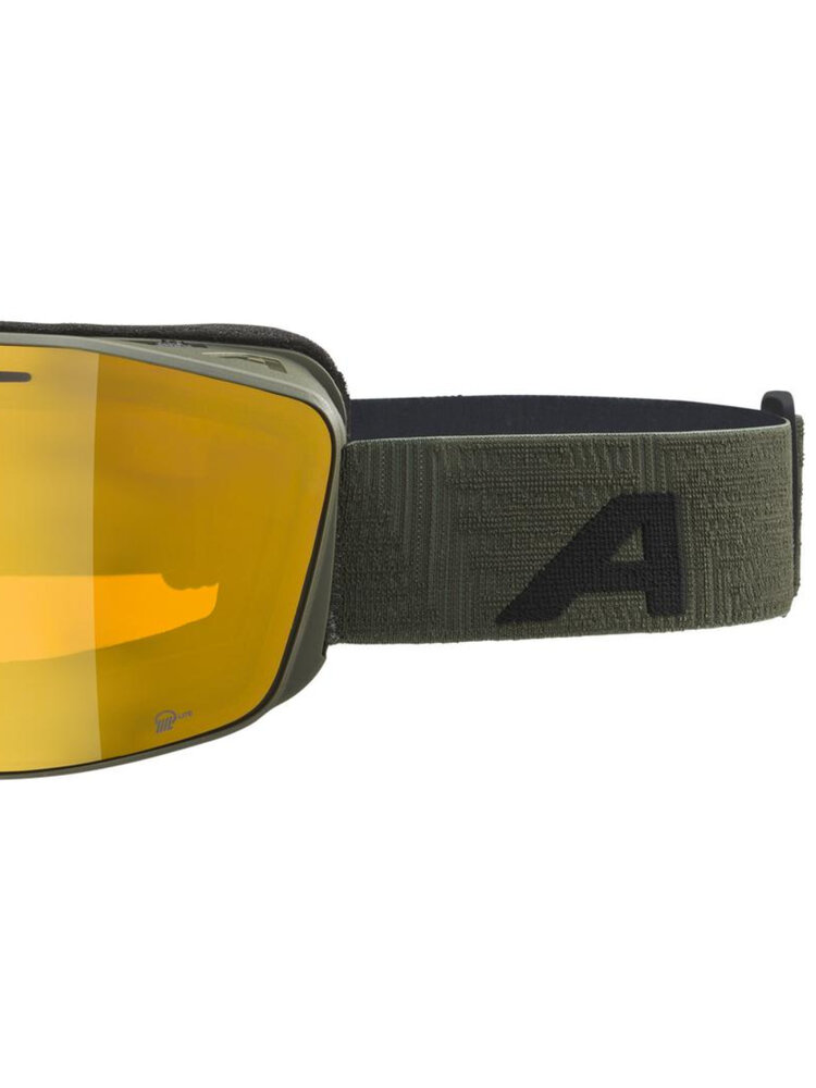 Comfortabel en trendy is deze olijfgroene Alpina Nendaz skibril. Dit large-fit model goggles heeft een cilindrisch, 'frameless design' en prima specificaties zoals de contrast verhogende Quattroflex Gold Mirror lens die optimaal presteert bij bewolkt tot licht zonnige weersomstandigheden. Modern design, hoogwaardige techniek, een extreem breed zicht, 100% UV en Infrarood blok, een prima ventilatie en goede verstelbaarheid... De lijst met specificaties is best lang!