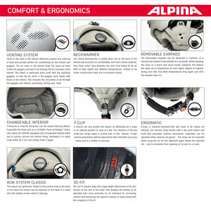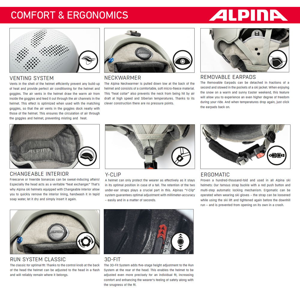 In dit topmodel hardshell vizierhelm combineert Alpina het MIPS Systeem met een maximaal aantal aan positieve eigenschappen én een perfecte pasvorm. De ventilatie is over een breed veld verdeeld wat veel comfort brengt evenals de instelbaarheid die snel en nauwkeurig is in te stellen dankzij de FidLock sluiting (met behulp van magneet). De warme, Microfleece nekwarmer zorgt ervoor dat er geen luchtstroom langs uw nek gaat. Daarnaast is deze helm met vizier ideaal voor brildragers. Uniek is het design is het Translation Rotation Mechanism (TRM) waarbij het vizier naadloos aansluit op de helm, zonder ruimte voor tocht. De pasvorm van deze helm is bijzonder prettig en comfortabel dankzij de van Lavalan wol en Microfleece binnenwerk. De schuimstructuur onder de harde ABS buitenschaal is gemaakt van Hi-EPS, waardoor de prettige ventilatie merkbaar is. De lucht wordt actief naar binnen geleid, langs het hoofd geleid en via openingen aan de achterzijde weer naar buiten getransporteerd. Dit voorkomt dat warmte zich ophoopt en een optimaal klimaat gegarandeerd is. Het Alpina Run Systeem Classic zorgt dat de maatvoering zeer precies kan worden gefinetuned aan de individuele vorm van het hoofd. Daarnaast zijn de earpads afneembaar, prettig bij warm weer. Kortom... fijne, comfortabele wintersport helm!