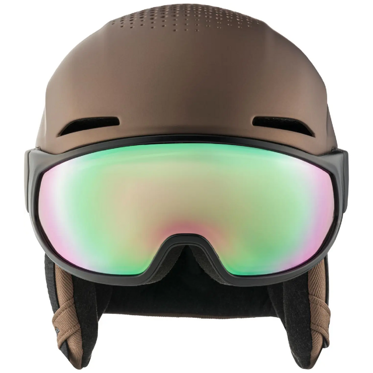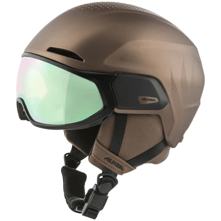 Deze Alpina Oro QV in Gunmetal Matt grijze kleur is eigenlijk de completere uitvoering van de Alto voorzien van MIPS veiligheidsysteem en het meest luxe, meekleurende vizier. Deze stevige, zeer comfortabele skihelm heeft de veilige Hardshell / ABS constructie. Uniek aan deze modellen is het TRM mechanisme dat het vizier naadloos laat aansluiten op de helm. Hierdoor is er geen hinderlijke luchtstroom die je bij veel andere vizier-skihelmen wel hebt. Het luxe Photochromic (meekleurende) vizier is breed en geeft daardoor maximaal zicht en het comfort is erg fijn door de pasvorm maar ook door de met Lavalan schapenwol afgewerkte nekwarmer en binnenstoffering. De hygiëne is goed voor elkaar dankzij het feit dat deze uitneembaar is. De ventilatie is de helm zorgt voor minder vocht in de helm waardoor het dubbelwandige vizier nagenoeg niet kan beslaan. Ook bij warm weer is het zweten aanzienlijk minder wat het comfort nog beter maakt.