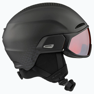 Deze Alpina Oro QV skihelm heeft het QuattroVario meekleurende / Photochromic vizier met ideaal zicht tijdens donker weer en sneeuw tot licht bewolkt weer (Categorie 2-3). Maximaal contrastrijk zicht voorzien van Polariserende en Spiegelende coating. Het vizier wordt automatisch donkerder als er meer licht op valt en biedt altijd 100% bescherming tegen UV-A, UV-B en UV-C-stralen en mede dankzij de spiegelende eigenschappen van dit vizier blokt de spiegelcoating van deze lens ook Infrarode straling. Het vizier is óók voorzien van een Anti-Fog coating dus beslaan is nagenoeg onmogelijk.