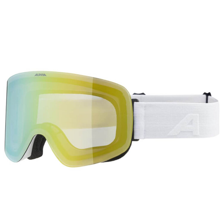 Deze frisse, witte Alpina Penken is een wat groter model, 'frameless design' skibril met interessante specificaties en een prima prijsstelling. Hij heeft een brede, cilindrische vorm en dus een heel breed zichtveld waarbij de lens het beste zicht geeft bij zonnige weersomstandigheden. Lekker complete, grotere skibril die erg populair is bij de Freestyler wintersporters onder ons.
