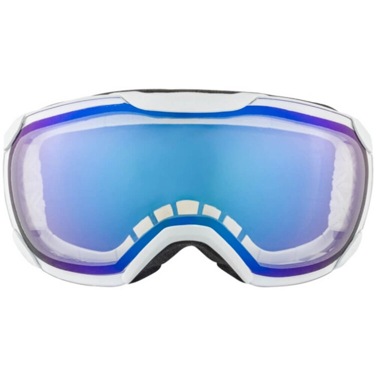 De Varioflex Blue Mirror lens, Cat. 1-2, past zich dynamisch aan verschillende lichtomstandigheden aan. Deze lens biedt helder zicht bij weinig licht en vermindert verblinding op zonnige dagen. De Blue Mirror lens verbetert contrast en dieptezicht, terwijl het ook bescherming biedt tegen schadelijke UV-stralen. Perfect voor wisselende omstandigheden tijdens het skiën.