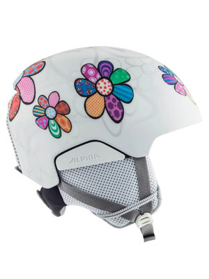 Bij deze leuke Alpina Pizi kinderskihelmen in wit Patchwork Flower kleur is een fijne combinatie gemaakt tussen optimaal draagcomfort en verstelbaarheid met meer dan voldoende veiligheid. Dankzij de In-mould constructie is deze skihelm heel licht maar wél sterk zodat het hoofd goed beschermd wordt tegen vallen en stoten. De Pizi junior sneeuwhelm zorgt ervoor dat een dag skiën of snowboarden voor uw junior wintersporter een echte verademing is.