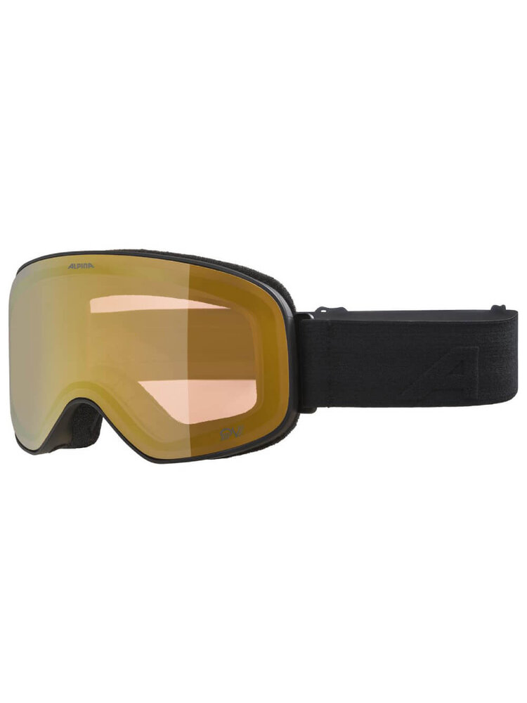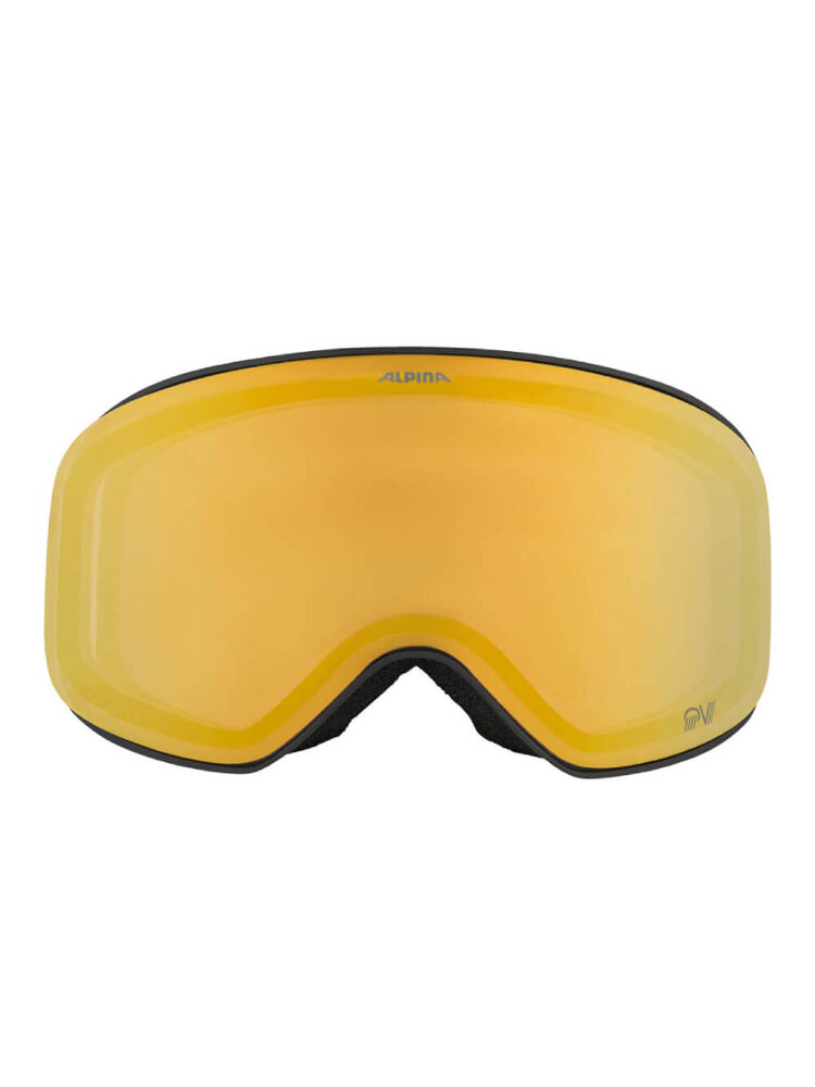 Deze Alpina Slope QV skibril is een 2024 model medium-fit skibril met 'frameless design'. Hij is voorzien van een goud getinte Quattro Varioflex (meekleurende) spiegellens en een brede, cilindrische vorm voor en breed zichtveld. De lens geeft optimaal zicht bij bewolkt tot zeer zonnig weer. Lekker comfortabele snow goggles die compleet is uitgevoerd.