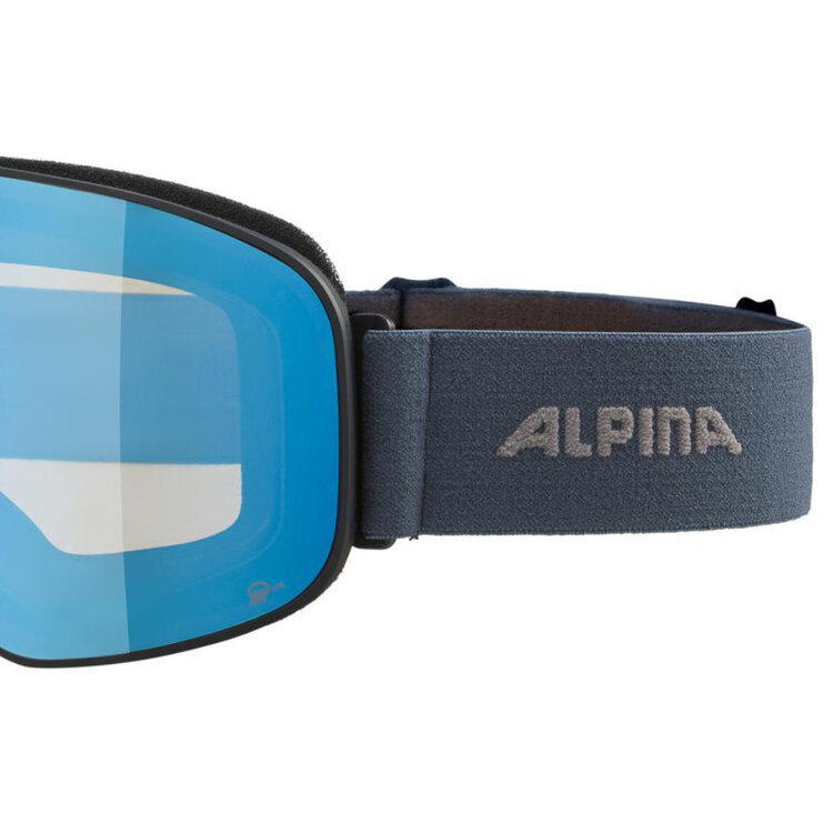 Deze Alpina Slope skibril is een 2023-2024 model medium-fit skibril met 'frameless design'. Hij is voorzien van een blauw getinte Q-Lite spiegellens en een brede, cilindrische vorm voor en breed zichtveld. De lens geeft optimaal zicht bij wisselvallig weer. Lekker comfortabele snow goggles die compleet is uitgevoerd.