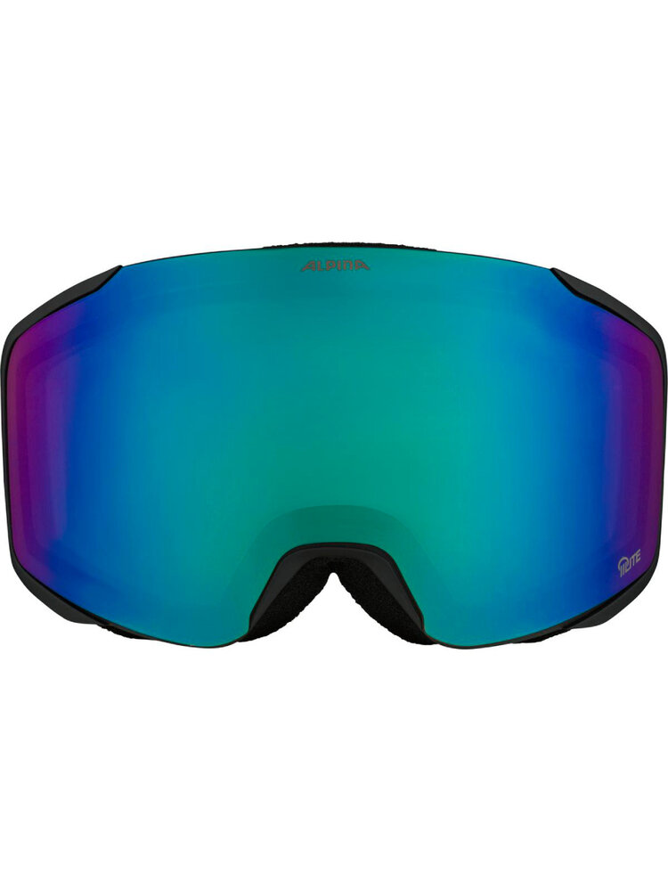 De lens van de skibril is erg bepalend voor de prijsstelling. Deze Alpina Taos versie met zwarte frame en groen getinte, spiegelende Mirror lens is technisch geavanceerd. Het combineert namelijk een warme tint met contrast verhogende eigenschappen. Er is door de spiegelcoating maximale filtering van Infra Rood wat het beeld rustiger maakt voor de ogen en met deze Q-lite lens een goed, contrastrijk, helder zicht oplevert. Deze bril beschermt bij elk weertype maar geeft ideaal zicht bij wat donkerder, bewolkt weer en sneeuw (categorie 2). Geschikt voor alle soorten wintersport.