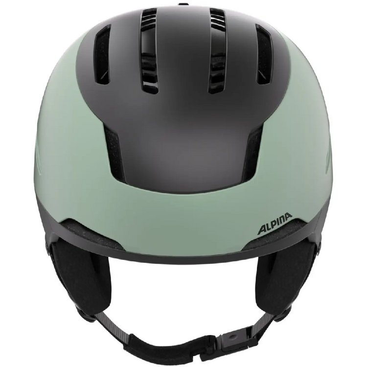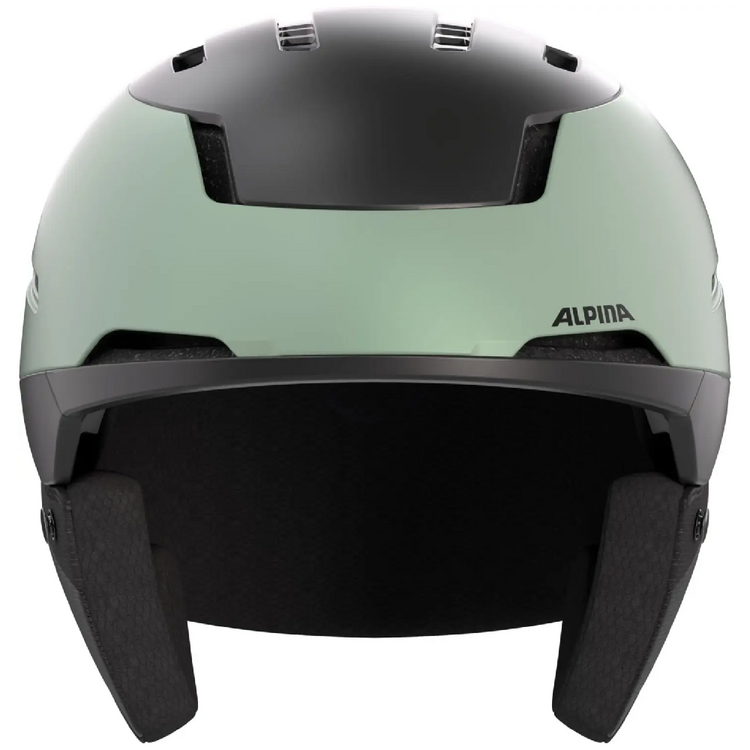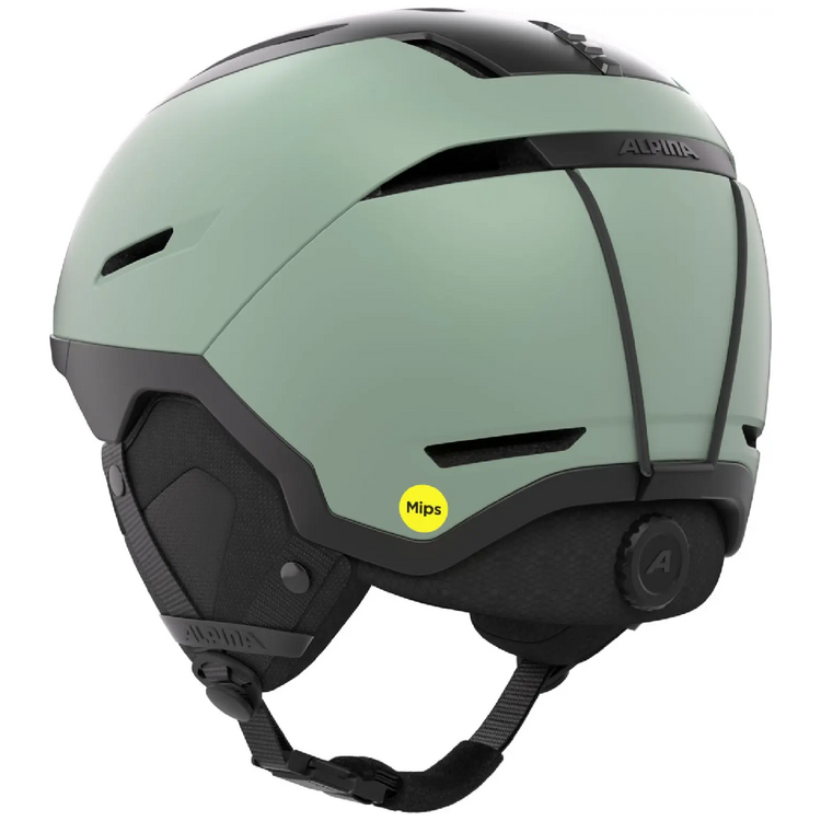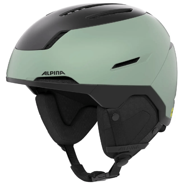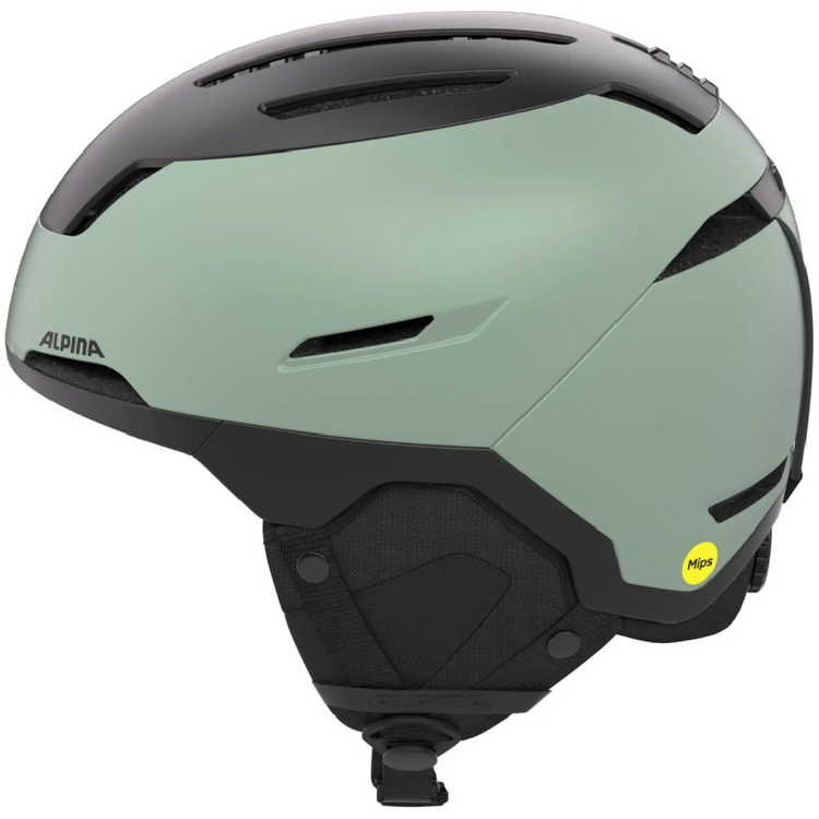 Dit is de groene Alpina Versatile Pro MIPS Skihelm 2025, de opgewaardeerde versie van de 'normale' Versatile in basisuitvoering. Beide modellen zijn zeer lichte maar veilige In-Mould / Softshell skihelmen voor zowel toerskiërs als freeriders, voorzien van een zachte, afneembare binnenvoering en oorkussens die wasbaar zijn en comfortabel aanvoelen.