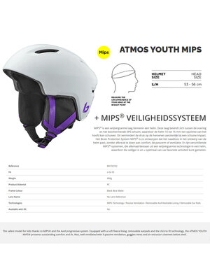 De Bollé Atmos Youth MIPS softshell / inmould kinder skihelm biedt een hele behoorlijke bescherming bij vallen of als je wordt aangeskied. Deze helm heeft een fijn verstel-mechaniek om de maatvoering precies te fine-tunen zodat hij goed aansluit op uw hoofd met een optimale pasvorm tot gevolg. Het MIPS-systeem beschermt daarbij de hersenen bij schuine botsingen. De verwijderbare oorkussens zijn ergonomisch gevormd en niet geheel afgesloten. Hierdoor mist u niets aan omgevingsgeluid maar zijn ze wel warm en comfortabel. Zowel deze oorpads als de stoffen (hypo-allergene) binnenvoering zijn uitneembaar en wasbaar.