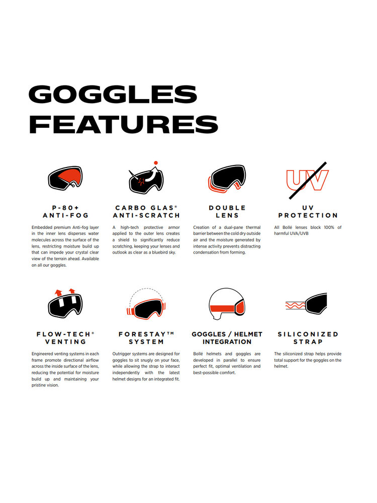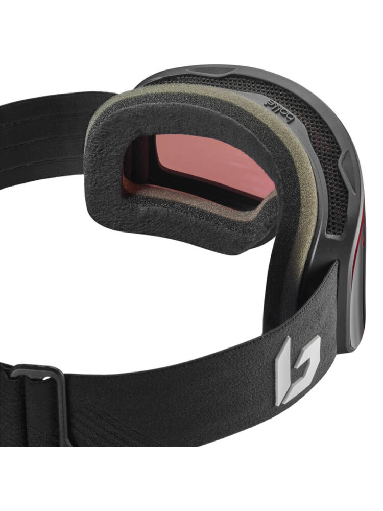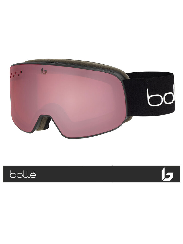 Deze mat-zwarte Bollé Nevada skibril met cat. 2 lens ziet er met zijn frameloze design erg indrukwekkend en modern uit. Deze serie skibrillen heeft een dubbelwandige lens en de Bollé Flow-Tech ventilatie die er samen met de Anti-fog coating voor zorgen dat deze skibril niet bevriest of beslaat. De lens is daarbij gemaakt van Anti-scratch afgewerkt Carbo-glas (Polycarbonaat). Handig zijn de siliconen strips op de verstelbare band die ervoor zorgen dat de bril niet van uw hoofd of helm afschuift. Het flexibele comfortframe en de prettig en zacht aanvoelende, drievoudige foamlaag (antibacterieel) waarmee de bril het gezicht raakt, zorgen voor een zeer prettig draagcomfort. Super skibril voor een concurrerende prijs.