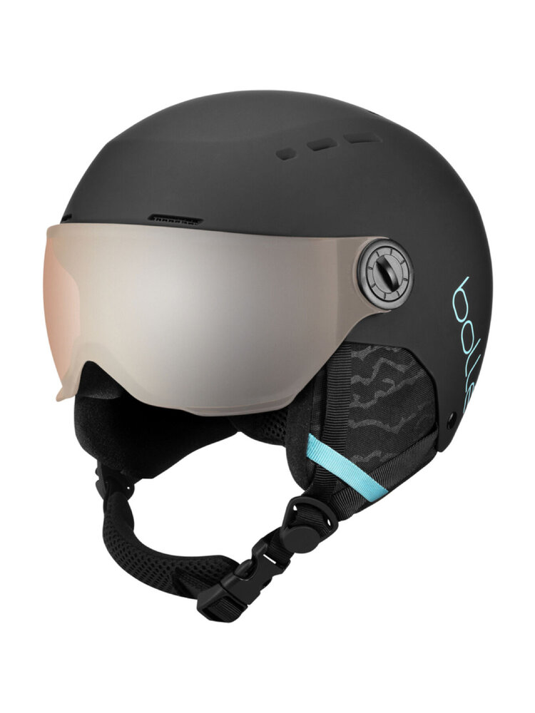 De Quiz Visor van Bollé biedt uitstekende bescherming bij vallen of als je wordt aangeskied. Bollé heeft met het Click-to-fit Systeem in deze helm een fijn verstel-mechaniek dat zich qua maatvoering precies aanpast aan uw hoofd-omtrek. Dit zorgt voor een optimale pasvorm en daardoor meer comfort. De ventilatie is actief en instelbaar dankzij de Airflow Extractor en de ergonomisch gevormde 3D-oorkussens zijn afneembaar en uitwasbaar, perfecte hygiëne is hierdoor gegarandeerd. Door het ontwerp van de Earpads mist u niets aan omgevingsgeluid maar bieden ze wel warmte en comfort.