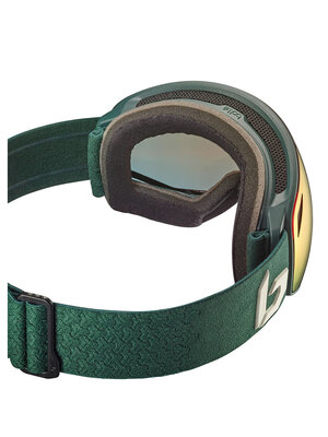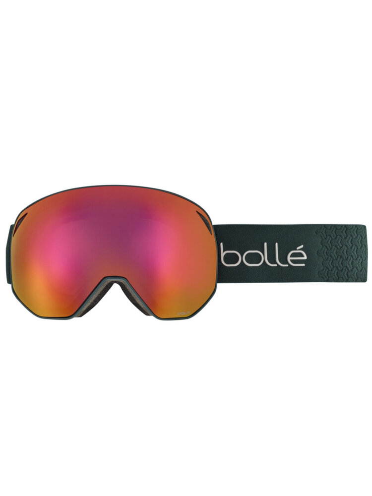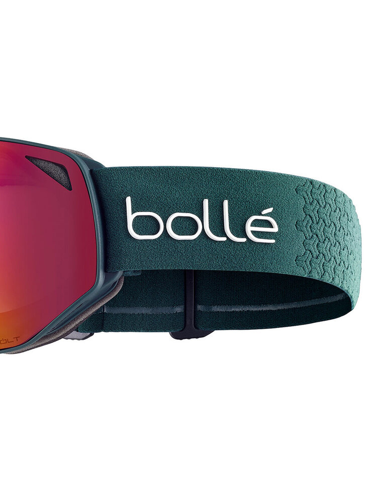 Deze Bollé Torus Deep Green Matte skibril heeft de Volt Ruby Mirror lens Cat. 2 en ziet er met zijn frameloze design erg indrukwekkend en modern uit. Deze serie skibrillen heeft een dubbelwandige lens en de Bollé Flow-Tech ventilatie die er samen met de Anti-fog coating voor zorgen dat deze skibril niet bevriest of beslaat. De lens is daarbij gemaakt van Anti-scratch afgewerkt Carbo-glas (Polycarbonaat). Handig zijn de siliconen strips op de verstelbare band die ervoor zorgen dat de bril niet van uw hoofd of helm afschuift. Het flexibele comfortframe en de prettig en zacht aanvoelende, drievoudige foamlaag (antibacterieel) waarmee de bril het gezicht raakt, zorgen voor een zeer prettig draagcomfort. Super skibril voor een concurrerende prijs.