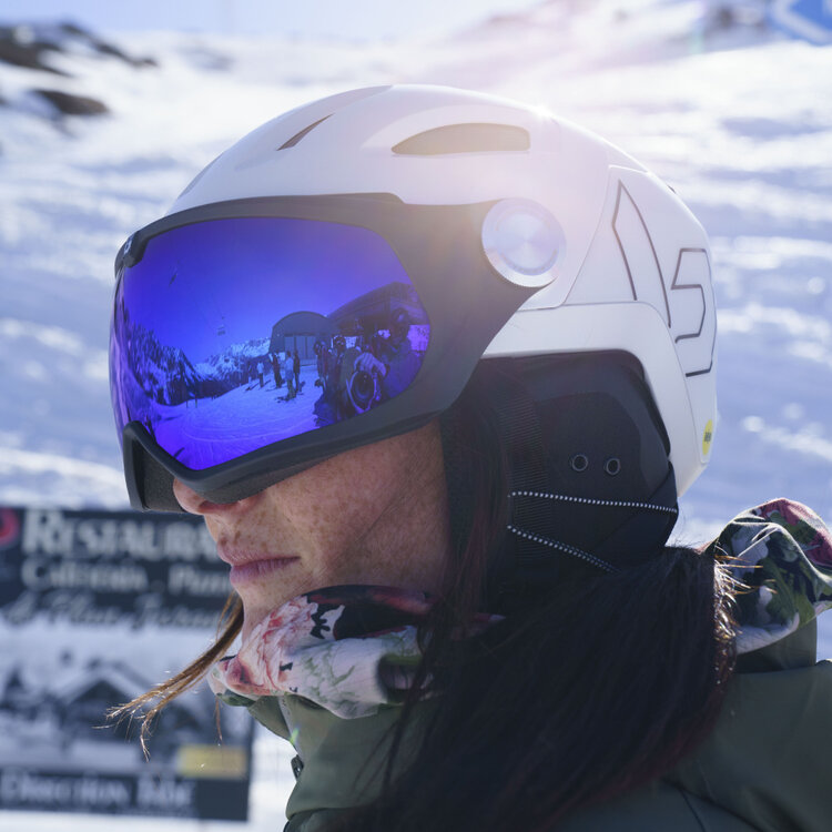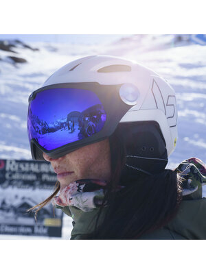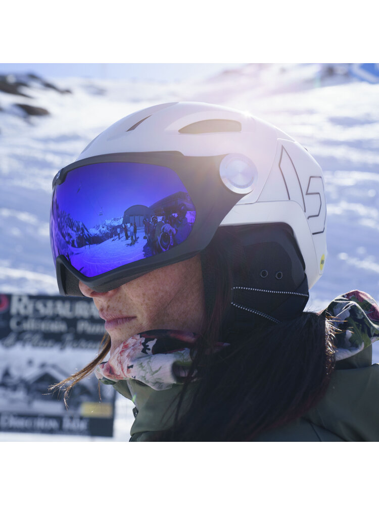 Deze Bollé V-Ryft Mips skihelm is uitgerust met een cat 1-3 meekleurend vizier en is ontwikkeld voor ideaal zicht bij zowel bewolkte als zonnige weersomstandigheden. Het design is breed en zorgt voor een enorm panoramisch zicht, veel breder dan bij gebruik van een losse skibril. Daarnaast is een vizier erg fijn voor brildragers die hun bril op sterkte eronder willen dragen.