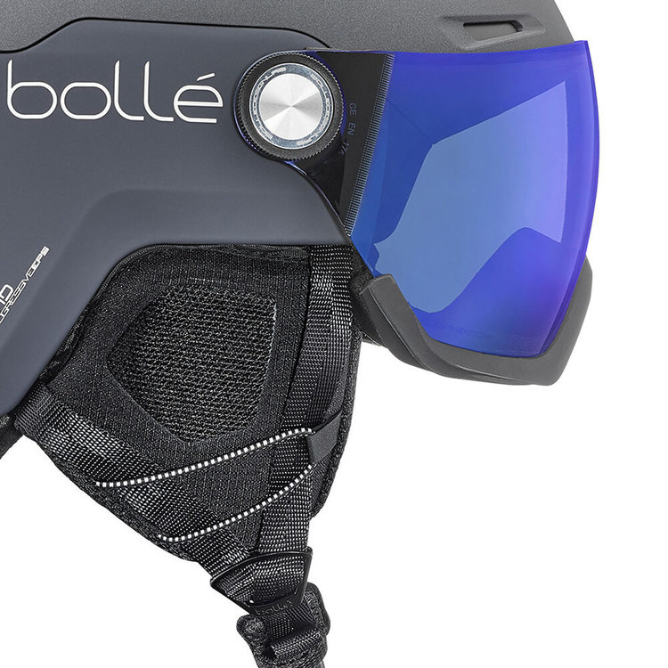 Deze Bollé V-Ryft Pure skihelm is uitgerust met het luxe Photochromic Blue vizier zodat het wisselen van vizier als het weer omslaat, tot het verleden behoort. Dit meekleurende vizier wordt donkerder als de zon gaat schijnen en juist lichter als het bewolkt wordt of gaat sneeuwen. Zo heb je altijd optimaal zicht en dat is zowel handig als veilig. Het vizier is breed en zorgt voor een enorm panoramisch zicht, veel breder dan bij gebruik van een losse skibril. Daarnaast is een vizier so-ie-so erg fijn voor brildragers die hun bril op sterkte eronder willen dragen