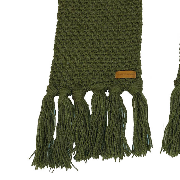 Heerlijk warm, de Classic C Scarf uit de collectie van MP Headwear van Nederlands snowboardtalent Melissa Peperkamp. Deze leger groene, grof gehaakte sjaal is 2 meter lang, uitgevoerd in topkwaliteit Acrylwol en v.v. bruin lederen merklabel.