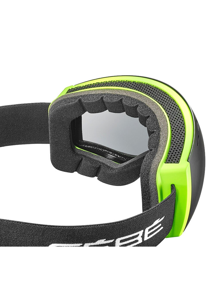 Het frame van deze chique CéBé Cloud CB33006 Snow goggles is sferisch van vorm dus heeft alleen horizontaal een bolling. De fijne spiegellens geeft perfect helder en kleurrijk zicht en bescherpt perfect. De band is eenvoudig verstelbaar en het 'glas' van de bril is Anti-scratch en Anti-Fog gecoat en is ook dubbelwandig en voorzien van ventilatie. Het flexibele comfortframe en de drievoudige, antibacteriële foamlaag waarmee de skibril het gezicht raakt, zorgen voor een zeer prettig draagcomfort.