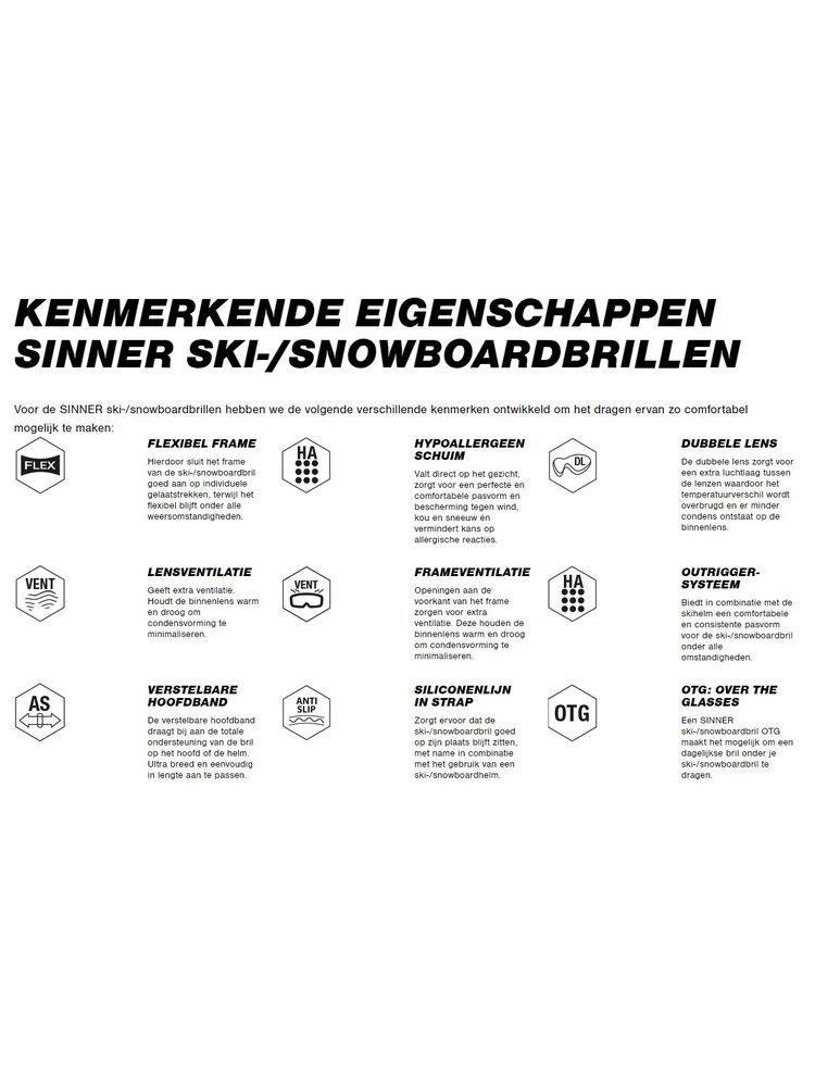 Hij is super lichtgewicht, behoorlijk geventileerd, en heeft een hele fijne spiegellens die Anti-fog gecoat is. Deze Sinner Arc Trans+ sneeuwbril is erg compleet en zeer comfortabel. Door de dubbelwandige lens beslaat hij niet en de 3-laags hypo-allergeen foamrand sluit hij nauwkeurig en comfortabel aan op het gezicht. De elastiek-band is net als alle andere Sinner skibrillen voorzien van antislip siliconen-strepen zodat hij niet schuift op skihelm of hoofd. Ook is hij gemakkelijk naar de juiste lengte te verstellen, ook met handschoenen aan.