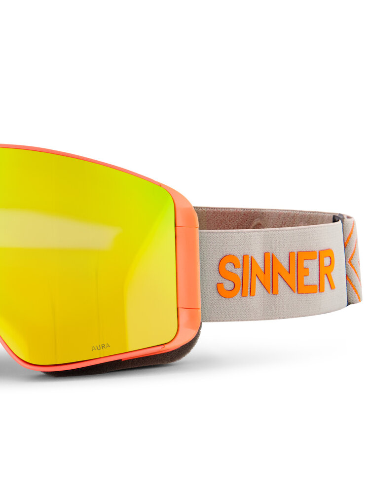Deze stoere Aura skibril van Sinner is een moderne wintersportbril met een slim lenswisselsysteem om bij het omslaan van het weer de categorie 1 (bewolkt) lens snel een eenvoudig te wisselen voor de categorie 3 lens (zonnig). Het ontwerp is nagenoeg frameless ofwel: je ziet geen kunststof frame, dat is verborgen achter de lens. De kwaliteit van de meegeleverde twee Sintrast lenzen is erg fijn want die twee lenzen schroeven het contrast behoorlijk hoog op en dat geeft een mooi beeld. Comfort en ventilatie staan op hoog niveau waarmee hij zich moeiteloos kan meten met de top in de branche. De Aura is OTG (Over The Glasses) skibril dus eventueel ook geschikt om over een bril-op-sterkte heen te dragen!