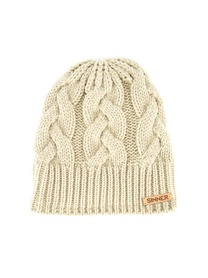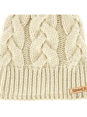 Deze grof gevlochten, zandkleurige Cable beanie van Sinner houdt je hoofd warm en zorgt dat je er goed uitziet tijdens de wintermaanden. Gemaakt van 30% wol 70% Acryl. One size fits all.