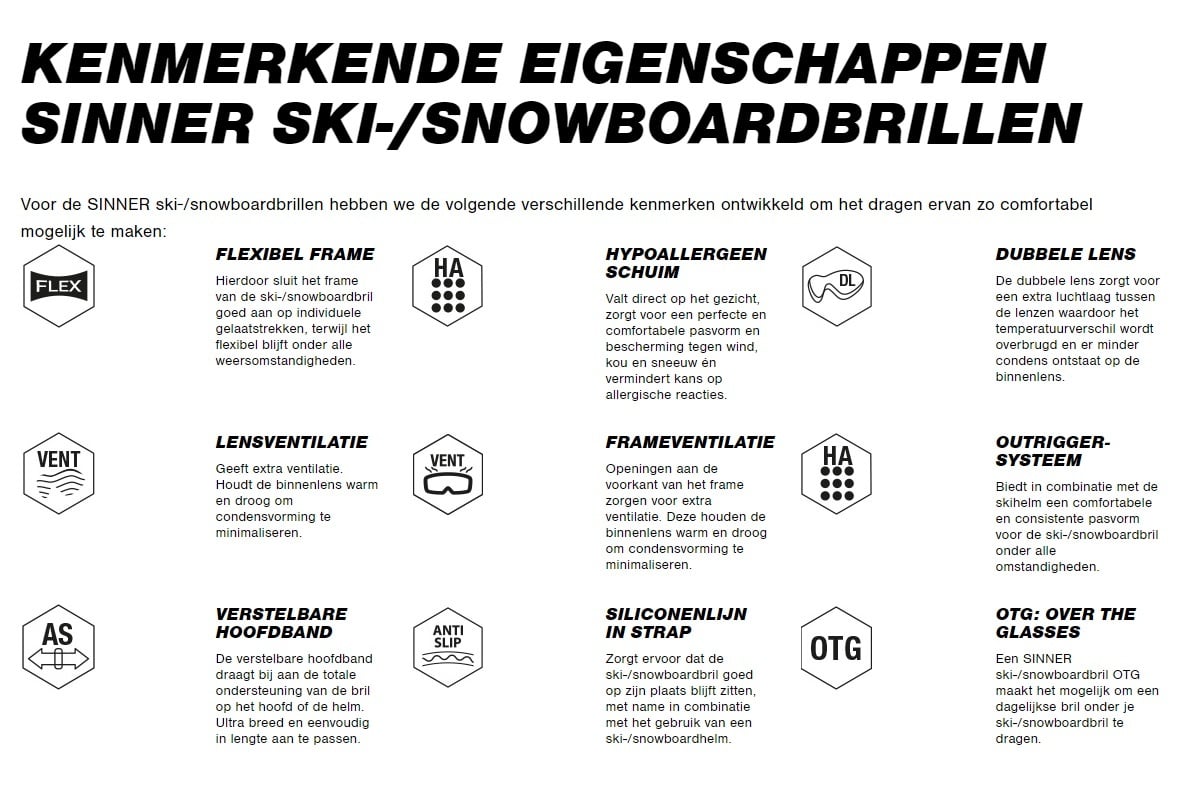 Uw kind kan zonder problemen de piste op met deze stoere, gemakkelijk verstelbare Sinner Duck Mountain junior-skibril. Door de dubbelwandige lens en 'Anti-fog' coating beslaat hij niet, De hypoallergeen foamrand sluit nauwkeurig en comfortabel aan op het gezicht en de elastieken band is voorzien van antislip siliconen-strepen zodat hij niet schuift op de skihelm of het hoofd. Ook is hij gemakkelijk naar de juiste lengte te verstellen, zelfs met handschoenen aan. De