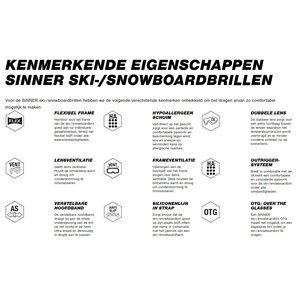 Uw kind kan zonder problemen de piste op met deze stoere, gemakkelijk verstelbare Sinner Duck Mountain junior-skibril. Door de dubbelwandige lens en 'Anti-fog' coating beslaat hij niet, De hypoallergeen foamrand sluit nauwkeurig en comfortabel aan op het gezicht en de elastieken band is voorzien van antislip siliconen-strepen zodat hij niet schuift op de skihelm of het hoofd. Ook is hij gemakkelijk naar de juiste lengte te verstellen, zelfs met handschoenen aan. De