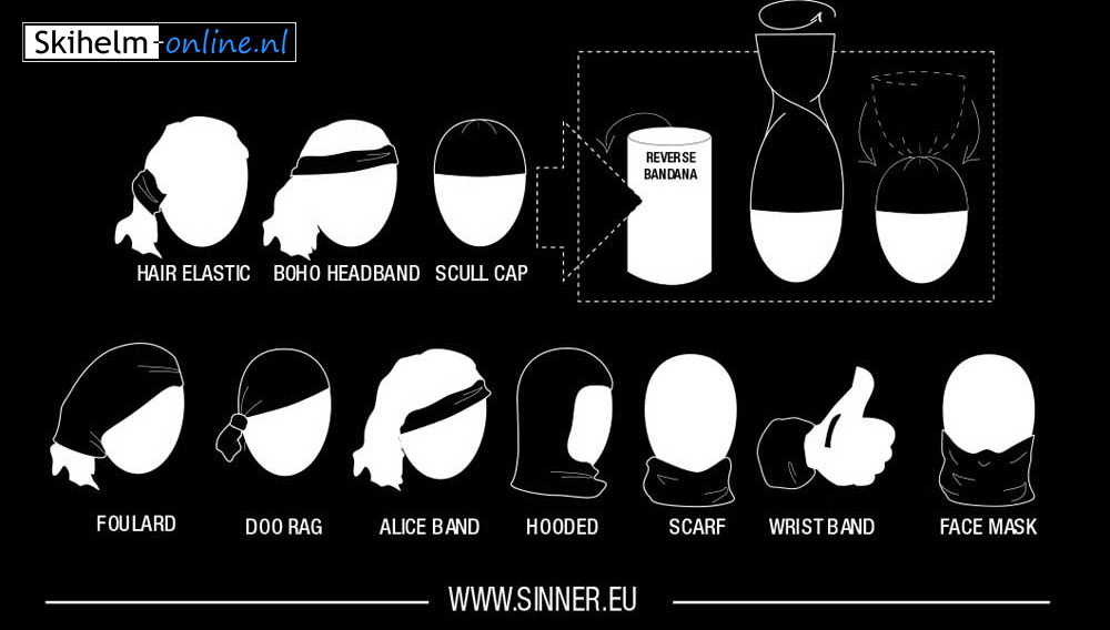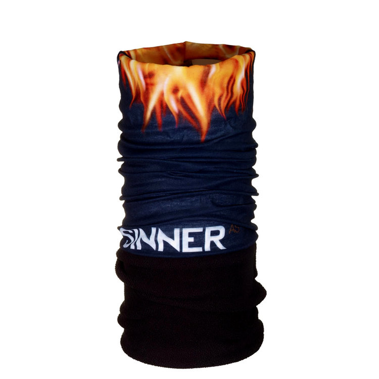 Leuke, zwarte Sinner Fleece Bandana's met 'Flame' print. Kan op verschillende manieren gedragen worden. Geschikt voor vele buitenactiviteiten en verkrijgbaar in vele verschillende prints. Maat: One Size Fits All.