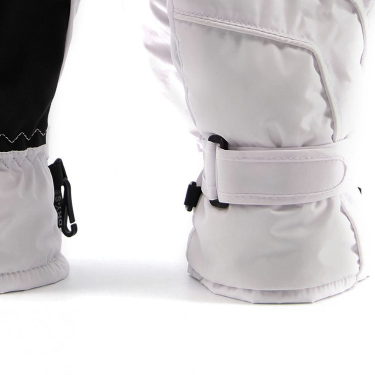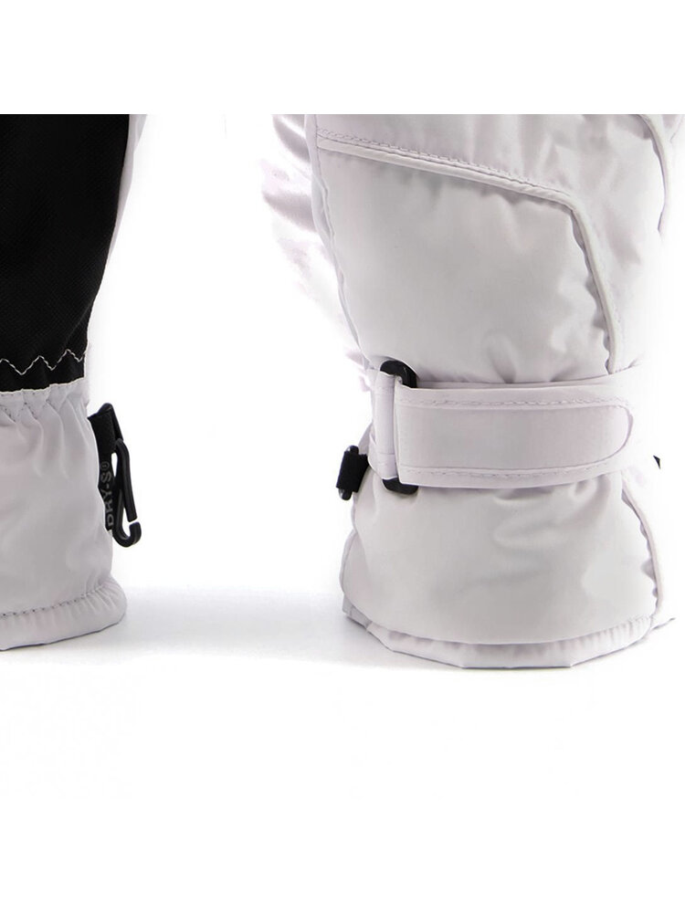 Meer dames dan heren dragen deze fijne handschoenen die zijn gemaakt van witte, ademende, geventileerde stof (Nylon). De klittenband-sluiting rond de pols is handig. De met PU-leder verstevigde duim en handpalm geven stevigheid en een goede grip. Waterdichtheid: 10.000 mm, winddichtheid 6.000 mm.