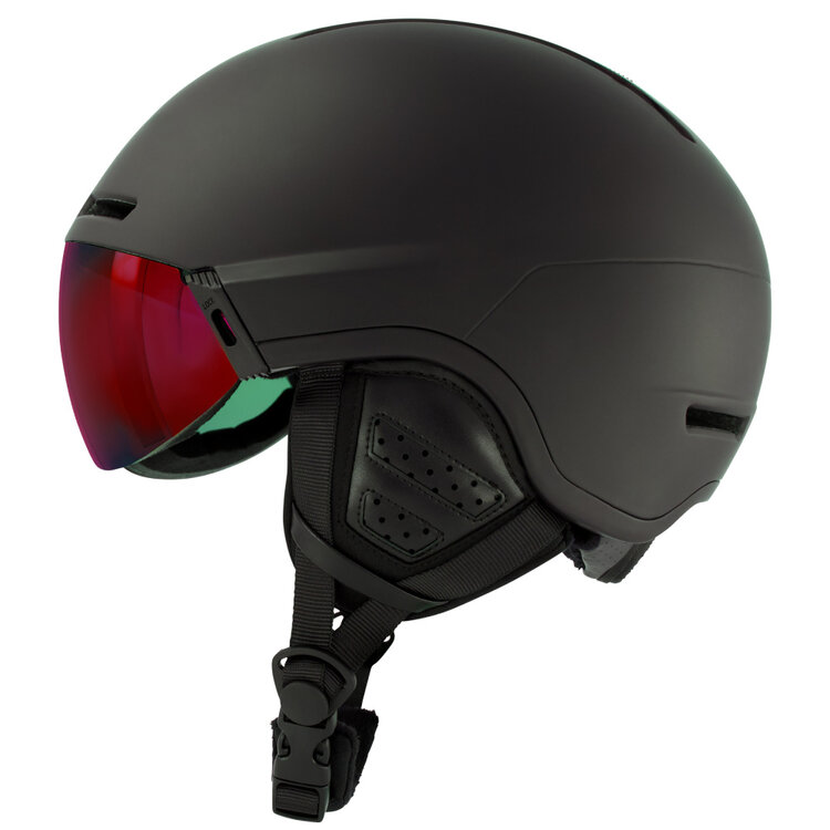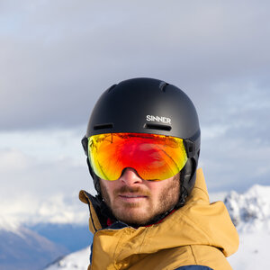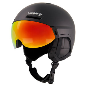 Deze zwarte vizierhelm is uitgevoerd met het beroemde, spiegelend Sinner Red Revo kleurvizier (Cat. 2) dat optimaal zicht biedt bij bewolkt tot licht zonnig weer. De spiegelcoating op het vizier maakt de uitstraling niet alleen cool, ook vizier blokt het alle UV én infrarode straling wat een belangrijke bijdrage levert aan de zon-bescherming, hoe fel de zon ook is. Het vizier zorgt voor panoramisch zicht en voorkomt het op-en-af-gedoe met een losse skibril. Deze skihelm is ook v.v. een OTG (Over The Glasses) vizier, wat erg fijn is voor brildragers die hun bril op sterkte eronder willen dragen.