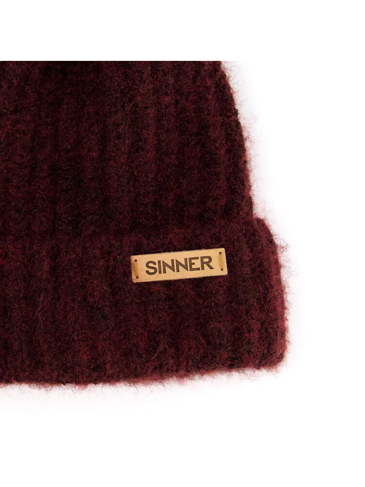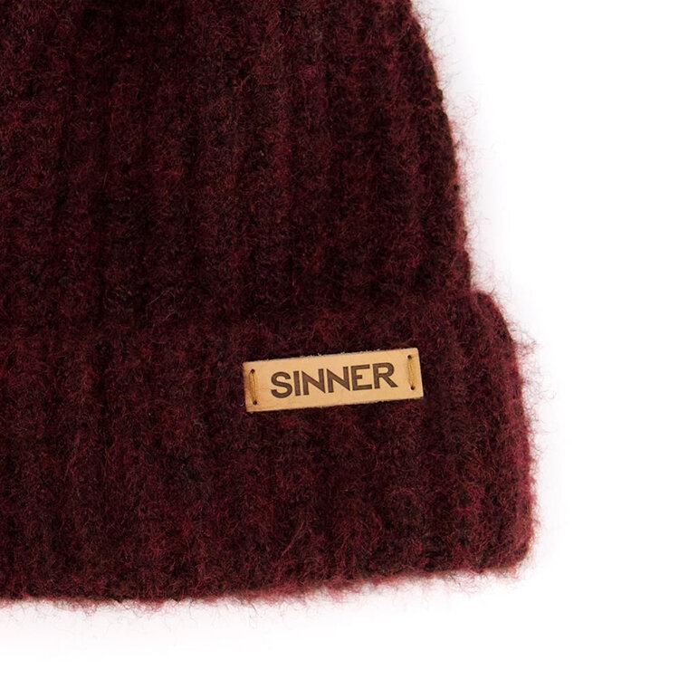 Heerlijk warm en voorzien van originele, haarachtige Pom Pom is deze met de hand gebreide Sinner Mossy 2024 muts in Burgundy / donkerrode versie. Beanie van zacht Acryl / Polyester. Voorzien van lederen Sinner branding.