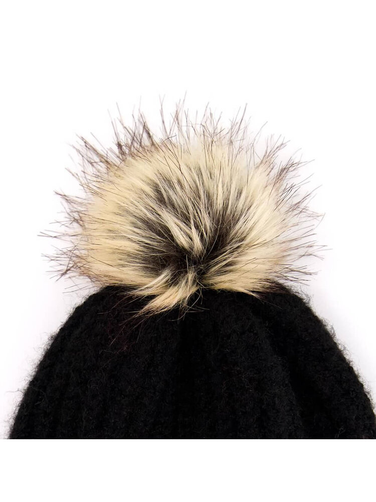 Gemaakt van 97% gerecycled Polyester en 3% Spandex is deze leuke, handgebreide Sinner Mossy beanie muts met bolvormige Pom Pom. Lekker warm en verkrijgbaar in verschillende kleuren. Dit is de zwarte uitvoering met cremekleurige bol.