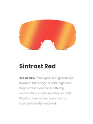 De spiegelende lens van een skibril bepaalt uw zicht en de mate van bescherming van uw ogen die de lens biedt tegen de schadelijke kant van zonlicht (UV-400 bescherming). Deze Sintrast lens zorgt voor een helder, contrastrijk beeld en filtert alle reflectie er keurig uit. Ideaal bij zwaar bewolkt, donker weer tot licht zonnig(Cat.2 ) en blokt 100% UV én Infra-Rood straling.