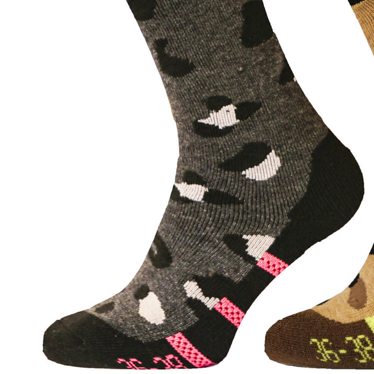 Deze 2-pack Sinner Placed Animal Dames Ski Sokken zijn uitgevoerd zwart/grijs tinten en bruin-créme tinten. Ontworpen voor de koudere omstandigheden tijdens uw wintersportvakantie op skies of snowboard. Ze houden de voeten van menig skiër en snowboarder droog, warm en beschermd. Maximaal comfort door anatomische gevormde linker en rechter sok. Deze sokken zijn geprijsd en verpakt per 2 paar (dubbel-pak).