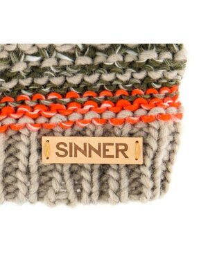 Grof met de hand gebreid, heerlijk warm en gemaakt van heerlijk zacht Acryl, dat is deze grijs melange Sierra Kinder wintermuts met pompom bolletje boverop. De binnenkant van deze beanie is v.v. een warme fleece voering. PU Sinner logo.