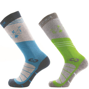Geleverd in 2-pack worden deze fijne Ski Mountain heren ski sokken van Sinner. Deze in grijs-blauw en grijs-groen houden de voeten van menig skiër en snowboarder droog, warm en beschermd. Ze hebben misschien wat meer mannelijke kleuren maar zijn qua vorm zowel geschikt voor mannen als vrouwen. Maximaal comfort door anatomische gevormde linker en rechter sok. Deze sokken zijn geprijsd en verpakt per 2 paar (dubbel-pak).
