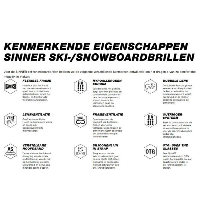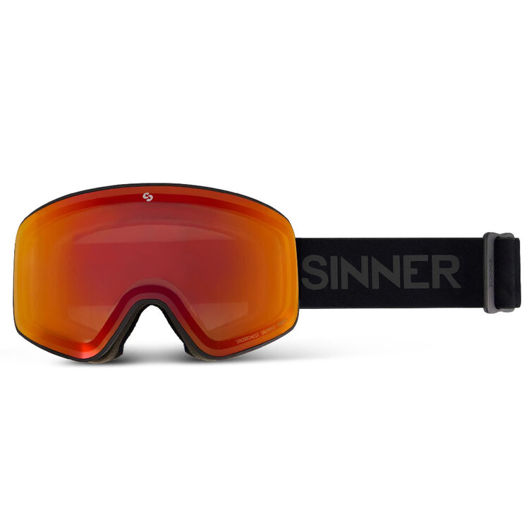Met deze mat zwarte Sinner Snowghost skibril heeft u de meest innovatieve skibril van dit moment waarmee deze fabrikant moeiteloos aanhaakt bij de topmerken in de branche. Een hoog comfort, breed zicht en de prettige, contrastrijke Sinner Sintrast Trans+ Orange lens maakt de bril geschikt voor mistig tot licht zonnig/zonnig weer. Het frame van de Snowghost skibril is zeer modern en minimalistisch. Het frame is namelijk maar 2mm dik, waardoor de skibril een enorm groot en wijd gezichtsveld biedt.