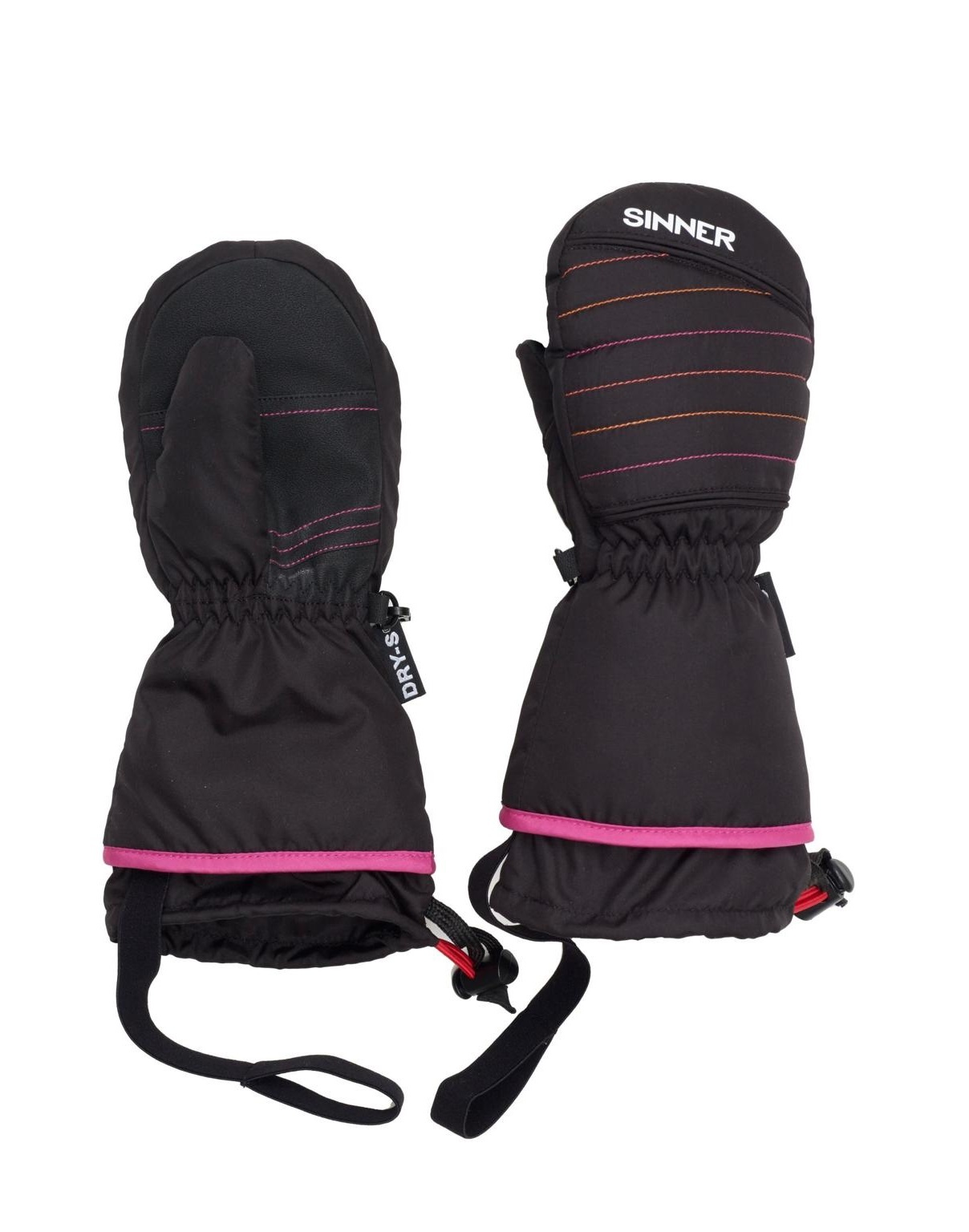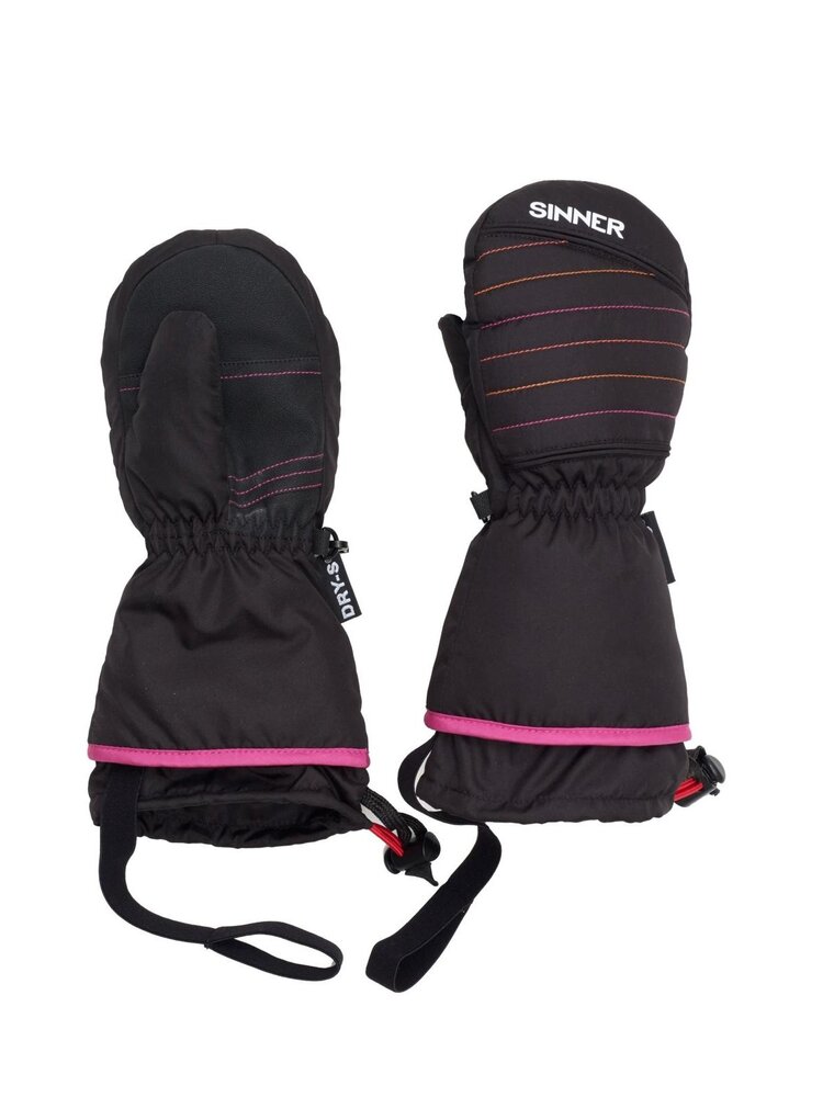 Deze Sinner Stratton Dry-S Junior wanten / mitts zijn erg warm en comfortabel en voorzien van veel handige kids-details. Verkrijgbaar in verschillende maten. Zwart-roze uitvoering.