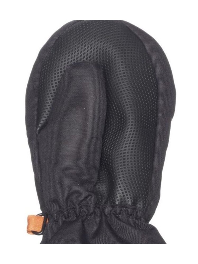 Doordat de vingers bij elkaar zitten, worden wanten als heel comfortabel ervaren. Meer jongetjes dan meisjes dragen deze zwarte wanten die van buiten zijn gemaakt van ademende, geventileerde stof (Nylon) en binnen afgewerkt zijn met zachte fleece. Behoorlijk winddicht (2.000mm) maar wel ademend dus de handjes van uw kleine blijven comfortabel en droog. De met PU-leder verstevigde duim en handpalm geven stevigheid en een goede grip. Het pols-elastiek is erg handig en de rib-manchetten zorgen voor goede aansluiting met de jas. Klittenband verbindingskoord.