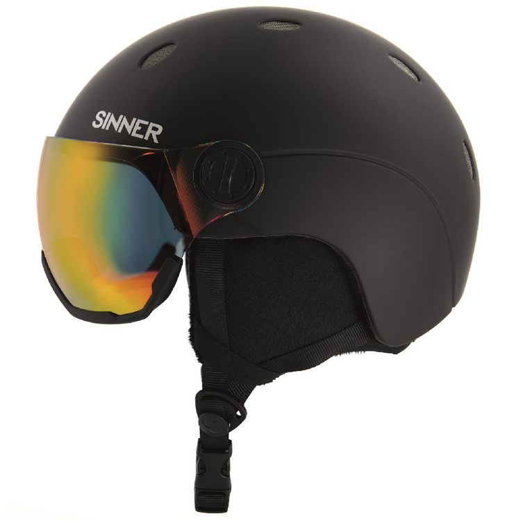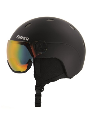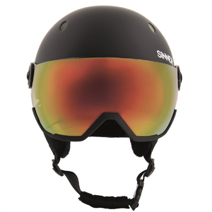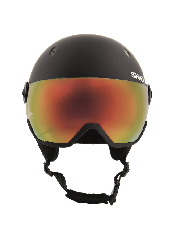 Deze skihelm is uitgevoerd met het meekleurende Sinner Trans+ Photochromic spiegelvizier (Cat. 1-3) dat optimaal zicht biedt bij de meest voorkomende weersomstandigheden van donker bewolkt en sneeuwig tot zonnig weer. Wisselen van vizier als het weer omslaat is dus voorgoed verleden tijd. De spiegelcoating op het vizier maakt de uitstraling niet alleen cool, ook blokt het alle UV straling wat een belangrijke bijdrage levert aan de zonbescherming, hoe fel de zon ook is. Het vizier zorgt voor panoramisch zicht en voorkomt op-en-af-gedoe met een losse skibril.