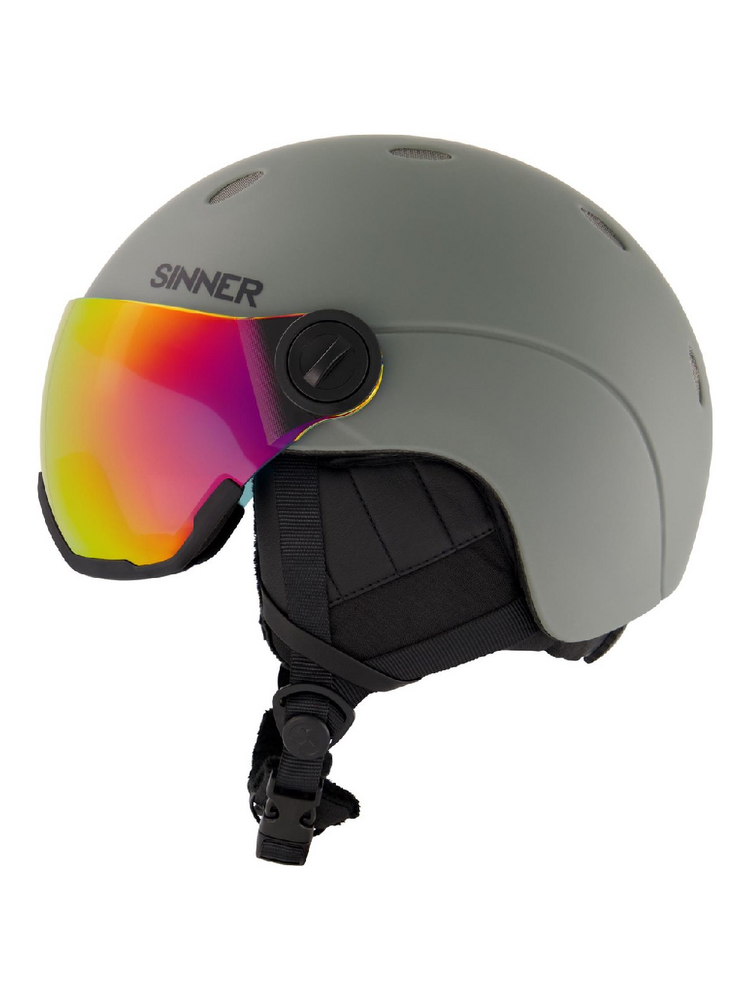 Deze skihelm is uitgevoerd met het beroemde, spiegelend Sinner kleurizier (Cat. 2) dat optimaal zicht biedt bij bewolkt en sneeuwig tot licht zonnig weer. De spiegelcoating op het vizier maakt de uitstraling niet alleen cool, ook blokt het alle UV én infrarode straling wat een belangrijke bijdrage levert aan de zon-bescherming, hoe fel de zon ook is. Het vizier zorgt voor panoramisch zicht en voorkomt op-en-af-gedoe met een losse skibril.